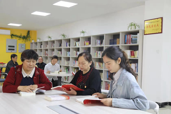 在示范學(xué)習(xí)點(diǎn)紅色書屋閱讀黨史書籍。江曉蕓攝