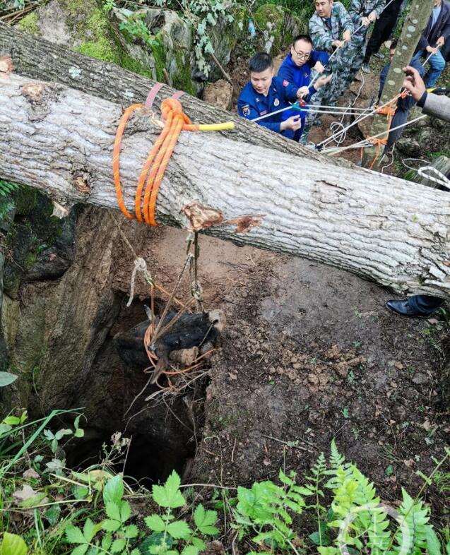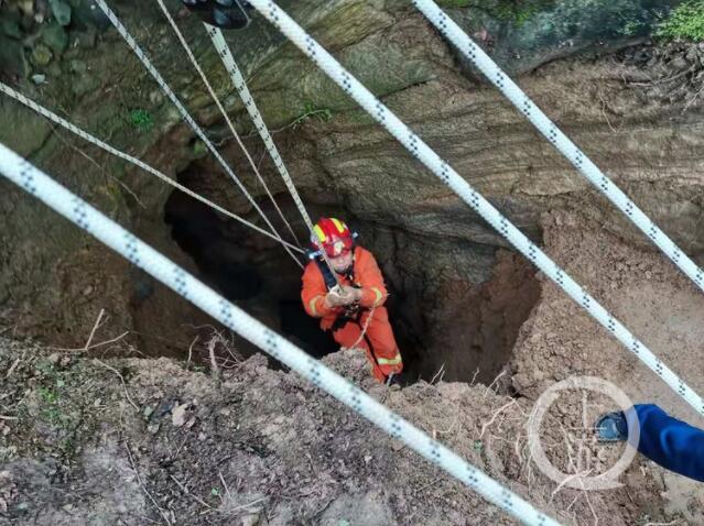 原來,當(dāng)日中午,有村民報(bào)警稱,自己家的母牛走丟了,已經(jīng)尋找兩天了,結(jié)果早上在一洞口處聽到了牛叫聲,才確定牛掉入洞內(nèi)。