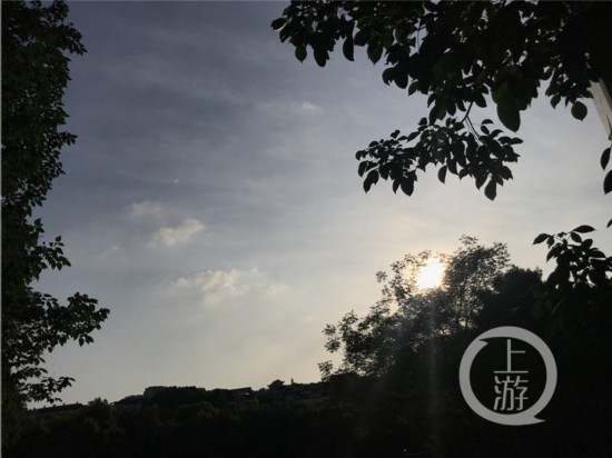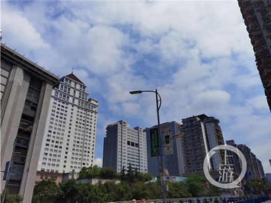 4月26日早晨,重慶中心城區(qū)上空陰沉沉的,部分地區(qū)小雨飄灑,走在路上還有些冷颼颼。但午后,陰云逐漸散去,天空放晴。下午兩三點(diǎn)左右,久違的藍(lán)天白云出現(xiàn)了。大家在朋友圈曬起好天氣。