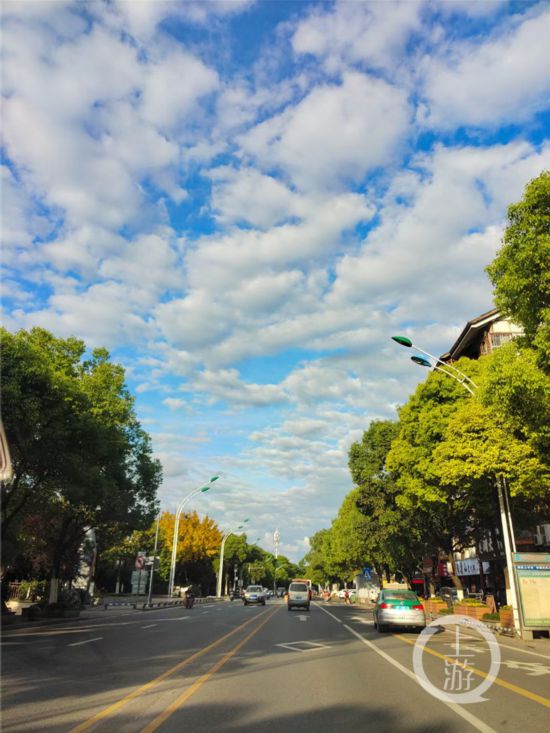 “下午在工作的時(shí)候,被眼前的場景美到了!毕挛3點(diǎn)半,在九龍坡區(qū)隆鑫花漾湖,喬女士在工作之余,順手拍下身邊的美景,天空像被雨水沖刷了一遍,藍(lán)藍(lán)的,很通透。