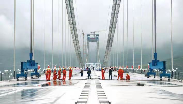 新田長(zhǎng)江大橋,承載著新時(shí)代萬(wàn)州新的大跨越。全長(zhǎng)1770米、主跨1020米的新田長(zhǎng)江大橋是中交一公局集團(tuán)繼重慶萬(wàn)州駙馬長(zhǎng)江大橋后,在三峽庫(kù)區(qū)修建的第二座千米級(jí)懸索橋,也是其進(jìn)一步鞏固自身在“大橋俱樂(lè)部”實(shí)力地位的重點(diǎn)工程之一。