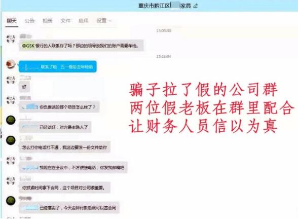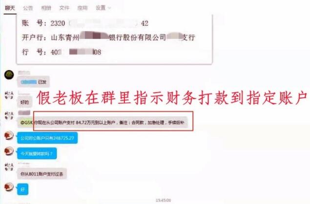 事發(fā)那天下午,“張先生”在群里對(duì)小蒙說(shuō)“開(kāi)會(huì)不方便接聽(tīng)電話”,并在群里發(fā)了付款信息,讓其加急處理,還交代說(shuō)“手續(xù)后補(bǔ)”。同時(shí),兩人還在群里對(duì)話,“已經(jīng)談好,對(duì)方是老熟人了”“你抓緊時(shí)間拿下合同,這個(gè)項(xiàng)目對(duì)公司很重要”……這讓小蒙也信以為真了。