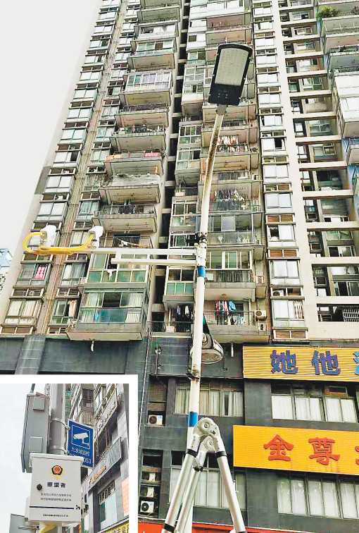 不過,仔細打量會發(fā)現(xiàn),這2個攝像頭跟其他安裝得有些不一樣——它對準的方向并非人行通道,而是上方的居民樓。