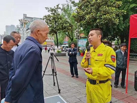 應(yīng)急隊(duì)員現(xiàn)場(chǎng)為市民講解防災(zāi)技能。田茜攝