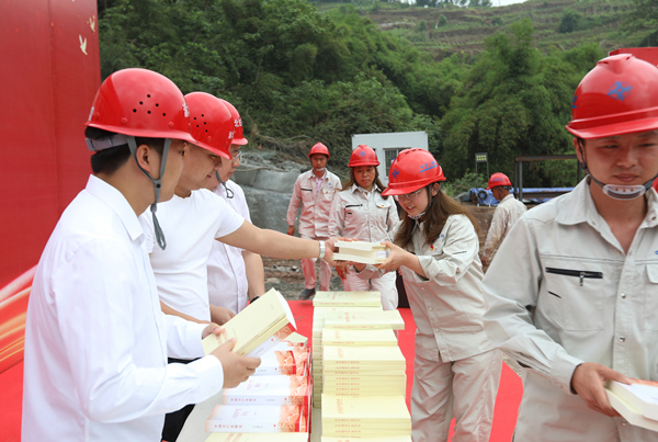人民網(wǎng)重慶5月12日電 “這是黨史學(xué)習(xí)的書籍,請(qǐng)您收好!”5月12日,在中交二航局重慶空港新城項(xiàng)目鹿山隧道工段施工現(xiàn)場(chǎng),渝北區(qū)住房和城鄉(xiāng)建設(shè)委員會(huì)工作人員將一本本黨史學(xué)習(xí)教育的書籍遞到了黨員工人手中。當(dāng)日,渝北區(qū)住房城鄉(xiāng)建委結(jié)合黨史學(xué)習(xí)教育,邀請(qǐng)渝北區(qū)委宣講團(tuán)進(jìn)工地“送學(xué)”,區(qū)住房城鄉(xiāng)建委也為工地工人黨員“送書”,打通建筑工人黨員黨史學(xué)習(xí)教育的“最后一公里”。