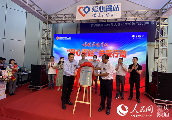 重慶電信南坪營業(yè)廳“愛心翼站”揭牌。人民網(wǎng) 劉政寧攝