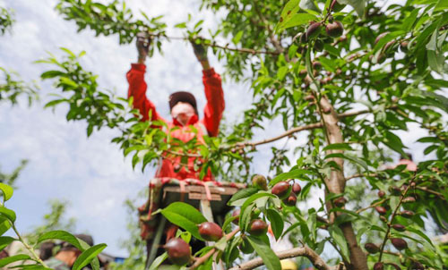 5月16日,河北唐山遵化市新店子鎮(zhèn)君子口村的農(nóng)民在油桃果園疏果。初夏時(shí)節(jié),各地農(nóng)民抓緊農(nóng)時(shí),在田間插秧、施肥,或在大棚里管護(hù)、收獲農(nóng)作物,田間地頭呈現(xiàn)出一派繁忙景象。新華社發(fā)(劉滿倉(cāng) 攝)