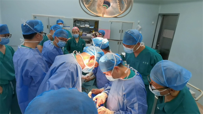 到達(dá)手術(shù)室后,創(chuàng)傷外科沈岳教授和王韜副教授、胸外科牛會(huì)軍和李昆昆副教授、心外科宋毅副教授、肝膽科皮儒先副教授、麻醉科王震副教授嚴(yán)陣以待,組成了剖胸和剖腹兩個(gè)手術(shù)組,聯(lián)合實(shí)施手術(shù)。