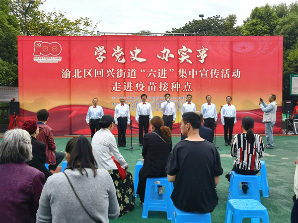 原來,為了推動回興街道的黨史學習教育走深走實,當天,回興街道結(jié)合“我為群眾辦實事”實踐活動,在雙湖路社區(qū)疫苗接種點開展“學黨史 辦實事”--“六進”集中宣傳活動,將“黨史故事”“黨史知識問答”、慶祝建黨100周年圖片展以及與大家息息相關(guān)的“防詐騙、防火防盜、防疫知識、普法知識、征兵政策”等知識送到疫苗接種點現(xiàn)場,進一步推動“學黨史 辦實事”深入群眾、深入人心,打造黨史宣傳新陣地,讓疫苗接種點成為學習黨史的“微課堂”。