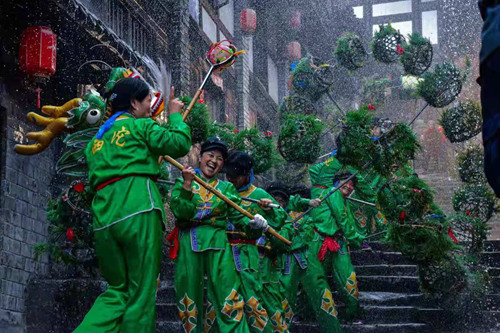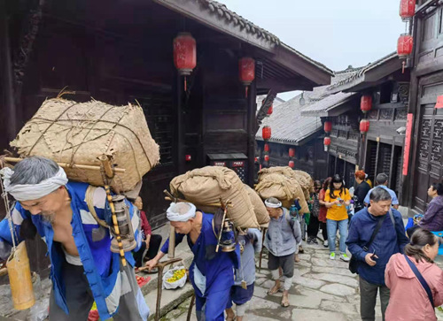 值得一提的是,西沱古鎮(zhèn)每天都為游客組織了豐富多彩的文化娛樂活動,可以一邊逛老街、一邊欣賞體驗。如運鹽習俗表演,玩牛等非遺項目表演,抬滑竿、坐花轎、彩龍船等民俗表演。如果累了,還可以品嘗這里的各樣美食。霸王雞、跳水魚、米豆腐、糍粑塊……別具特色的西沱美食,讓美味在舌尖上綻放。