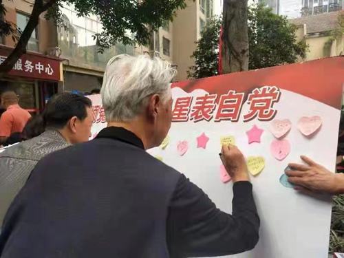 接著,黨員們把想對(duì)黨說的話寫在便簽紙上,制作成一張心意卡,貼到主題展板上。一個(gè)個(gè)文字跳動(dòng)在紙上,句句祝福、字字真誠(chéng),表達(dá)出黨員們對(duì)黨的熱愛之情。