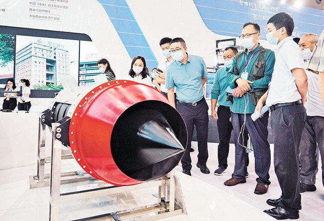 5月21日,西洽會現(xiàn)場,重慶大學(xué)產(chǎn)業(yè)技術(shù)研究院帶來的脈沖爆震發(fā)動機吸引了不少觀眾。