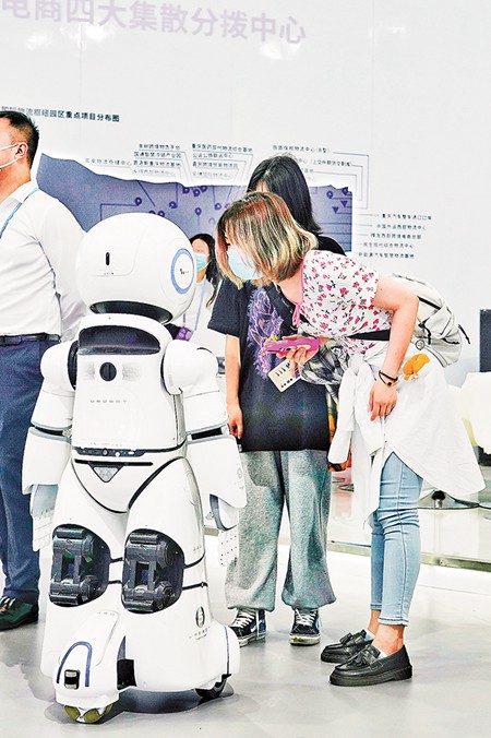 五月二十一日,西洽會現(xiàn)場,觀眾和機器人交流。