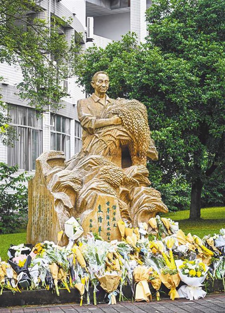5月22日,西南大學(xué),師生們紛紛自發(fā)來(lái)到校園中的袁隆平塑像前敬獻(xiàn)鮮花,以寄托哀思。記者 萬(wàn)難 攝/視覺(jué)重慶