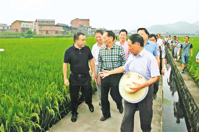 “袁老興致很高,他一邊興致勃勃地參觀雜交稻示范基地,一邊與農(nóng)民和本地專家交流!彼蚊粽f,“當(dāng)他聽到示范片的穎花數(shù)(即谷子)達(dá)到每畝4000多萬時,顯得非常高興,并表示了肯定,認(rèn)為‘在南川這樣的溫光條件下,能達(dá)到這樣的數(shù)據(jù),已非常不錯’。”