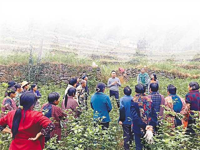 陳波(中)動員鄉(xiāng)親們種植豆腐柴。(受訪者供圖)