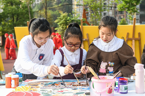 小朋友在創(chuàng)作書(shū)畫(huà)作品。龍塔街道供圖