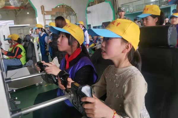 小學(xué)生體驗(yàn)?zāi)M飛行。梁平區(qū)委宣傳部供圖