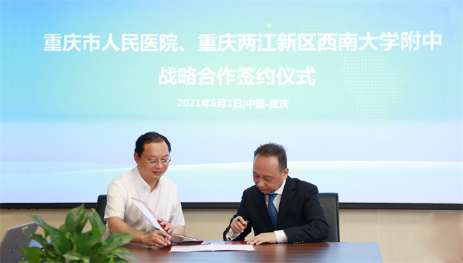 中國科學(xué)院大學(xué)重慶醫(yī)院(重慶市人民醫(yī)院)與重慶兩江新區(qū)西南大學(xué)附中達(dá)成戰(zhàn)略合作。院方供圖