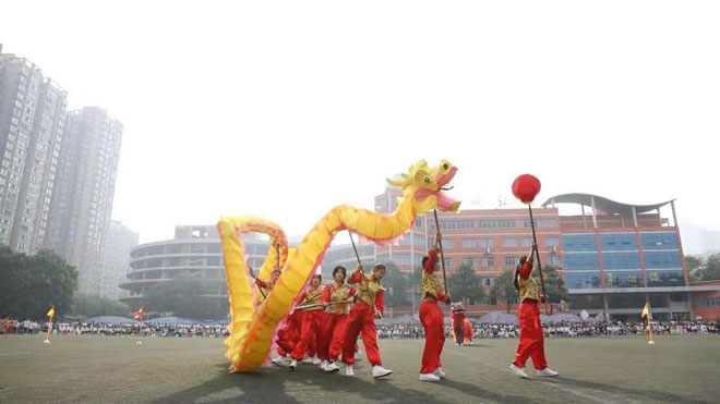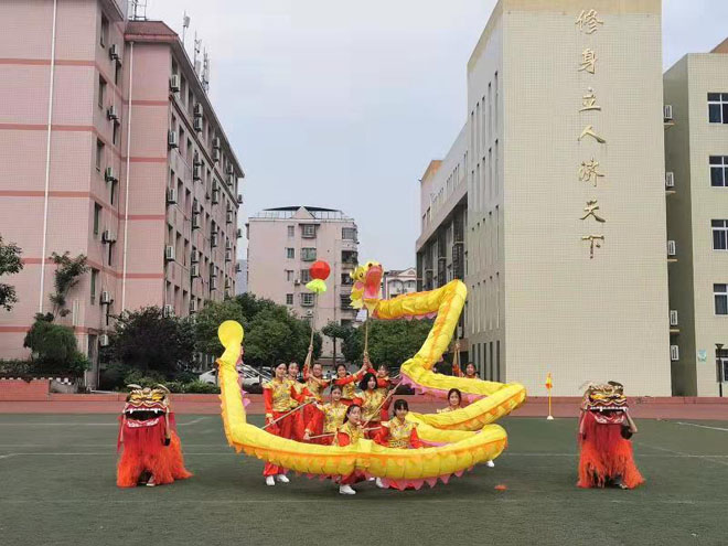 如今,銅梁二中是全國中小學(xué)舞龍舞獅教育示范學(xué)校,據(jù)了解,2019年以學(xué)校為班底演出的群舞《龍把子》作為重慶唯一代表,獲得了全國第十八屆群星獎。由銅梁二中編寫的《龍舞教學(xué)校本教材》也在全區(qū)中小學(xué)中推廣,龍舞教學(xué)納入了每個班級的體育課,讓每一位學(xué)生都會舞龍,讓學(xué)生在學(xué)習(xí)中領(lǐng)略龍舞魅力,讓龍舞在傳承中得到保護(hù)。