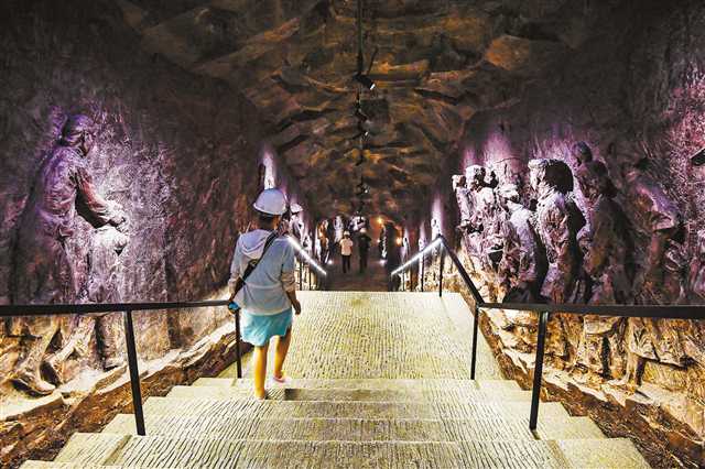 5月28日,重慶大轟炸“六五”大隧道慘案遺址,長(zhǎng)長(zhǎng)的階梯兩旁的群雕是避難者逃出隧道涌向洞外的樣子。