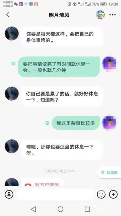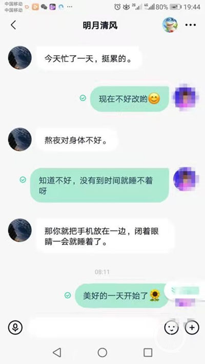 隨后的兩天時間里,張正國表現(xiàn)得非常貼心,據(jù)葉女士回憶:“早上他會問候上班累不累,中午會問候吃飯沒,晚上會問候下班沒,深夜還會提醒我睡覺。而且只要我發(fā)出信息,基本上都是很快會回復(fù),幾乎成了全天24小時的陪聊好友!