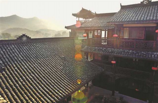 老街兩側(cè)均為2至3層全木質(zhì)穿斗結(jié)構(gòu)的店鋪。石板街蜿蜒曲折,連著座座豪宅大院和民居木樓。街上青磚黛瓦、榫卯木結(jié)構(gòu)、雕花木窗的明清建筑比比皆是。街后院落多為青磚黑瓦四合院,三樓或兩樓一底,其檐額、堂額、門窗等飾以各種圖案,具有典型的徽派風(fēng)格,大戶人家還有護(hù)院碉樓,每個(gè)院落自成一體,別有洞天。石板街臨街店鋪全為兩層樓,上層住人,下層作店,清一色的木板墻、木板門。