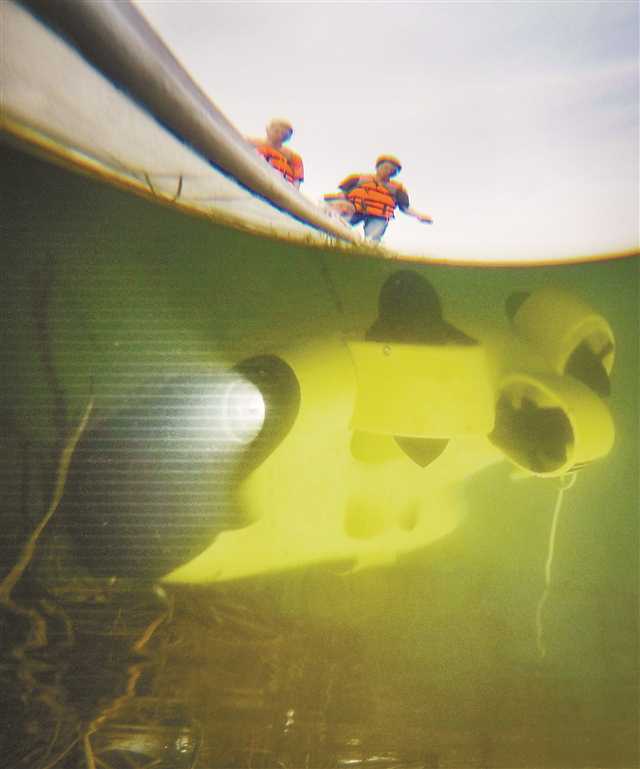 科研人員操控水下無人機(jī),查看魚在水草上的產(chǎn)卵情況。