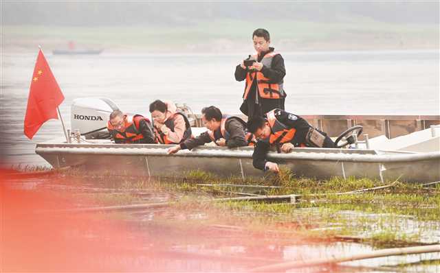 西南大學(xué)水產(chǎn)學(xué)院科研人員正在采樣。