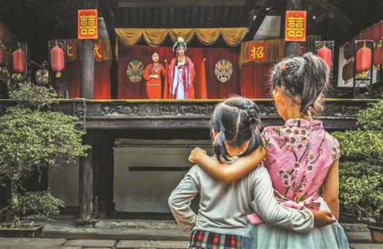 文昌宮戲樓,更值得一品。川劇名角金震雷就出生在淶灘,并常在這里演戲。戲樓平臺外欄木刻浮雕,有殘敗的遺憾,也讓人恍若隔世。若周末前往,還可坐著木椅搖著扇、喝著蓋碗茶嗑著瓜子,賞一場正宗的川劇。