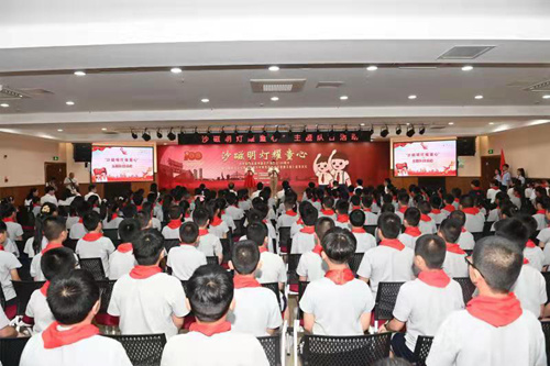 人民網(wǎng)重慶6月10日電 9日,重慶市沙坪壩區(qū)上橋南開小學(xué)禮堂里回蕩著嘹亮的《中國少年先鋒隊隊歌》,該校師生開展“沙磁明燈耀童心”主題隊日活動;顒又校撔I傧汝爢T獲贈了重慶市首本以地方黨史正史為藍本的連環(huán)畫冊——《沙磁明燈——新民主主義革命時期沙坪壩黨的發(fā)展歷程圖文集》。