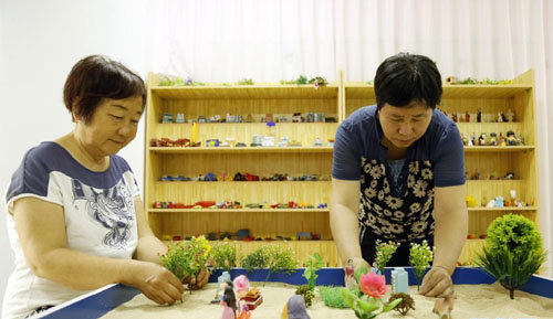 6月9日,居民在邢臺市襄都區(qū)北大街街道辦事處牛市新街社區(qū)養(yǎng)老驛站堆沙盤。