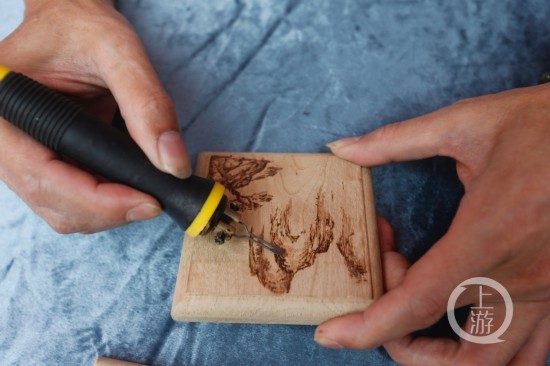 烙畫又稱火筆畫,這種中國傳統(tǒng)藝術(shù)珍品因用火燒熱烙鐵在物體上熨出烙痕作畫得名。區(qū)級(jí)非遺柏木坊烙畫傳承人王方明介紹說,“烙畫始于西漢,距今兩千多年,分為南北兩派。我們現(xiàn)在主要傳承的技藝是在宣紙、竹木上面作畫,它有種浮雕感覺,而且不會(huì)掉色,比筆墨保存時(shí)間更長!