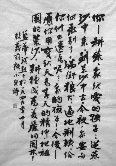 藍(lán)蒂裕遺詩(shī) 《示兒》 書法作品。重慶出版集團(tuán)供圖