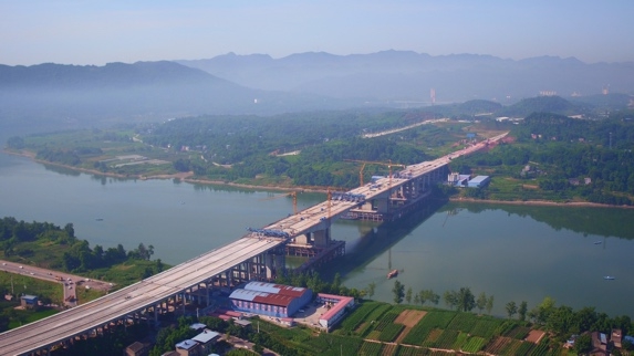 人民網重慶6月18日電 6月18日,隨著重慶合(川)長(壽)高速龍溪嘉陵江特大橋順利合龍,標志著重慶合長高速全線貫通,進入后續(xù)路面施工。隨著合長高速全線貫通,全長427公里的重慶三環(huán)高速公路也實現(xiàn)閉合“成環(huán)”。