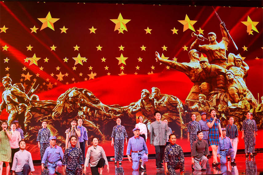 大合唱《沒有共產黨就沒有新中國》。鄒樂攝