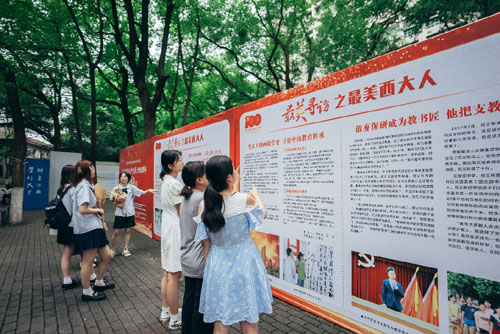 人民網(wǎng)重慶6月19日電 “這位95歲的醫(yī)生奶奶看起來好年輕!”“新聞專業(yè)的同學(xué)竟然去了四百公里遠(yuǎn)的巫溪縣做報(bào)道。”在西南大學(xué)綠意盎然的樟樹林間,八組鮮紅的巨幅展架吸引著學(xué)子們駐足觀看。從“最美初心”到“最美西大人”,從“最美建設(shè)者”到“最美奮斗者”,展板上圖文并茂的“最美”人物報(bào)道,吸引了諸多同學(xué)駐足觀看。