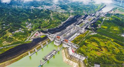 圖為6月19日,三峽五級船閘在穩(wěn)健運(yùn)行。