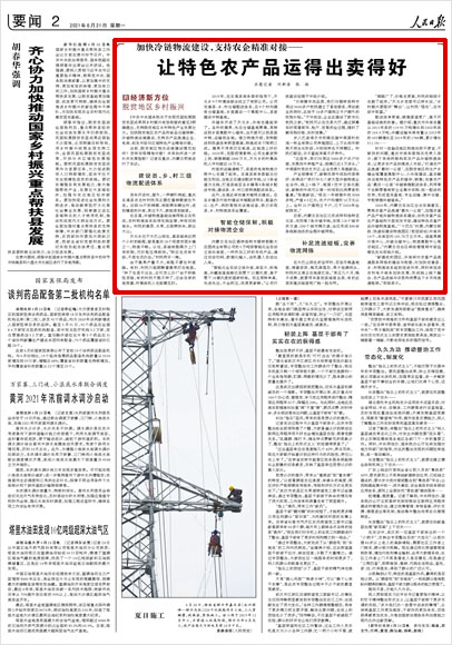 《中共中央國務(wù)院關(guān)于實(shí)現(xiàn)鞏固拓展脫貧攻堅(jiān)成果同鄉(xiāng)村振興有效銜接的意見》明確提出,支持脫貧地區(qū)鄉(xiāng)村特色產(chǎn)業(yè)發(fā)展壯大。加快脫貧地區(qū)農(nóng)產(chǎn)品和食品倉儲保鮮、冷鏈物流設(shè)施建設(shè),支持農(nóng)產(chǎn)品流通企業(yè)、電商、批發(fā)市場與區(qū)域特色產(chǎn)業(yè)精準(zhǔn)對接。