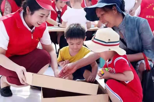 “萬眾一心”宣講志愿服務隊在現(xiàn)場宣講黨史、發(fā)放《紅巖春秋》等黨史資料,將理論送進群眾腦中;“萬紫千紅”科教志愿服務隊開展繪畫、表演、游戲互動等豐富多彩的志愿服務活動; “萬水千山”環(huán)保志愿服務隊進行環(huán)保知識宣傳,各個服務隊的志愿者們耐心講解,將新風“吹”到群眾的心里。
