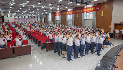 大會(huì)在莊嚴(yán)的國歌聲中拉開序幕。隨后,街道黨工委向在全街道基層黨建、城市管理、棚改拆遷、平安建設(shè)等中心工作中取得優(yōu)異業(yè)績、作出突出貢獻(xiàn)的200名優(yōu)秀共產(chǎn)黨員、20名優(yōu)秀黨務(wù)工作者和12個(gè)先進(jìn)基層黨組織頒發(fā)榮譽(yù)證書予以表彰,并向22名“光榮在黨50年”老黨員代表頒發(fā)紀(jì)念章。接著,在街道黨工委書記蔣渝的帶領(lǐng)下,全體黨員面向鮮紅的黨旗,舉起右手,莊嚴(yán)宣誓。