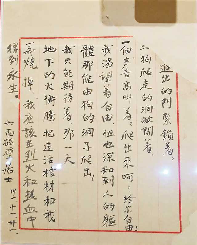 葉挺寫于重慶“中美合作所”囚室的《囚詩》手稿。