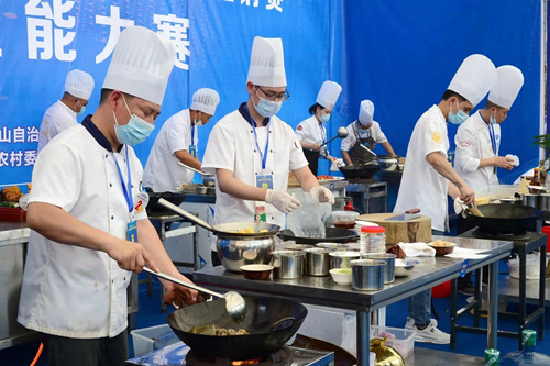 據(jù)了解,大賽分為職業(yè)技能大賽和秀山特色技能展示,職業(yè)技能大賽主要有中式烹調(diào)、茶藝、養(yǎng)老護(hù)理、紅色景點(diǎn)導(dǎo)游講解四個(gè)項(xiàng)目;秀山特色技能展示有土家織錦、龍鳳花燭、竹編、西式面點(diǎn)、秀山名特小吃制作等。