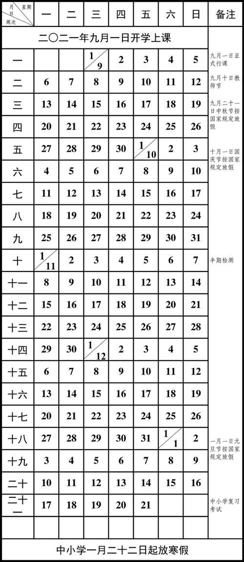 重慶市中小學(xué)2021至2022年學(xué)年度校第一學(xué)期校歷。重慶市教委 供圖 華龍網(wǎng)-新重慶客戶端 發(fā)