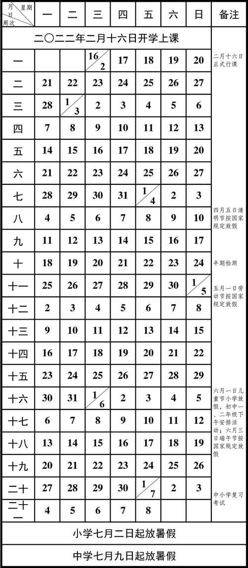 重慶市中小學(xué)2021至2022年學(xué)年度校第二學(xué)期校歷。重慶市教委 供圖 華龍網(wǎng)-新重慶客戶端 發(fā)