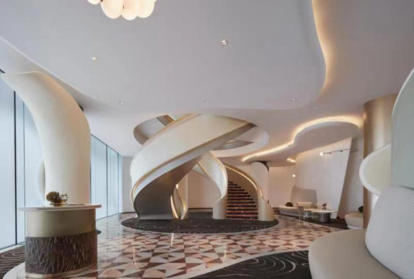 項目銷售大廳內(nèi)的雙螺旋樓梯;幽旯﹫D