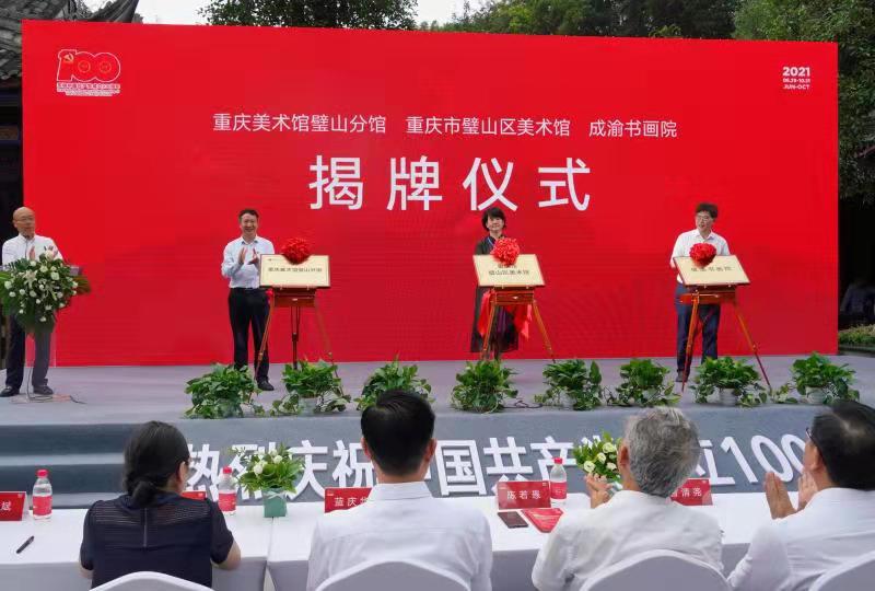 人民網(wǎng)重慶6月30日電 29日,《百名畫(huà)家畫(huà)百年·百名畫(huà)家畫(huà)璧山——慶祝中國(guó)共產(chǎn)黨成立100周年專題藝術(shù)展》開(kāi)幕式在璧山區(qū)觀音塘濕地公園舉行。展出所在地——璧山美術(shù)館當(dāng)天也正式揭牌并面向公眾開(kāi)放。