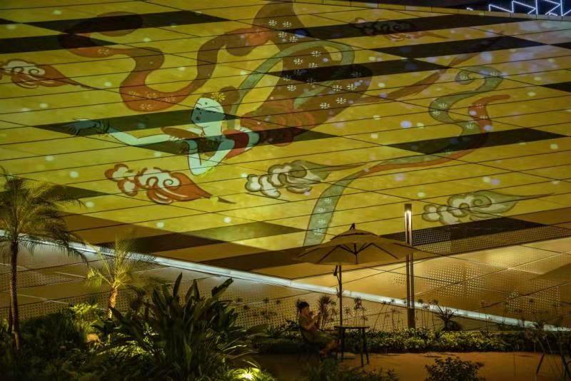 游客在暢游絲路花街的同時,還可現(xiàn)場觀看《繁花絲路》光影秀。該光影秀時長為15分鐘,分為三個篇章,采用3DMapping建筑投影技術(shù),將生動展示絲綢之路沿途自然景觀和國家風貌。