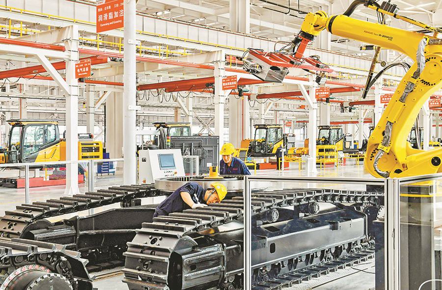“這座‘燈塔工廠’的數(shù)字化、智能化、自動化生產(chǎn)率接近80%!比患瘓F相關(guān)負(fù)責(zé)人介紹,在這座被業(yè)界譽為“最聰明的工廠”里,一名技術(shù)工人憑借一臺電腦就可為每個工位提供物料和零部件提取、配送服務(wù),甚至能達到“一張鋼板進去,一臺挖機出來”的效果。
