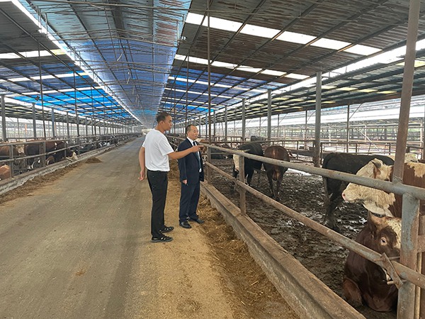客戶經(jīng)理到該公司肉牛養(yǎng)殖場實(shí)地調(diào)查。重慶農(nóng)商行供圖